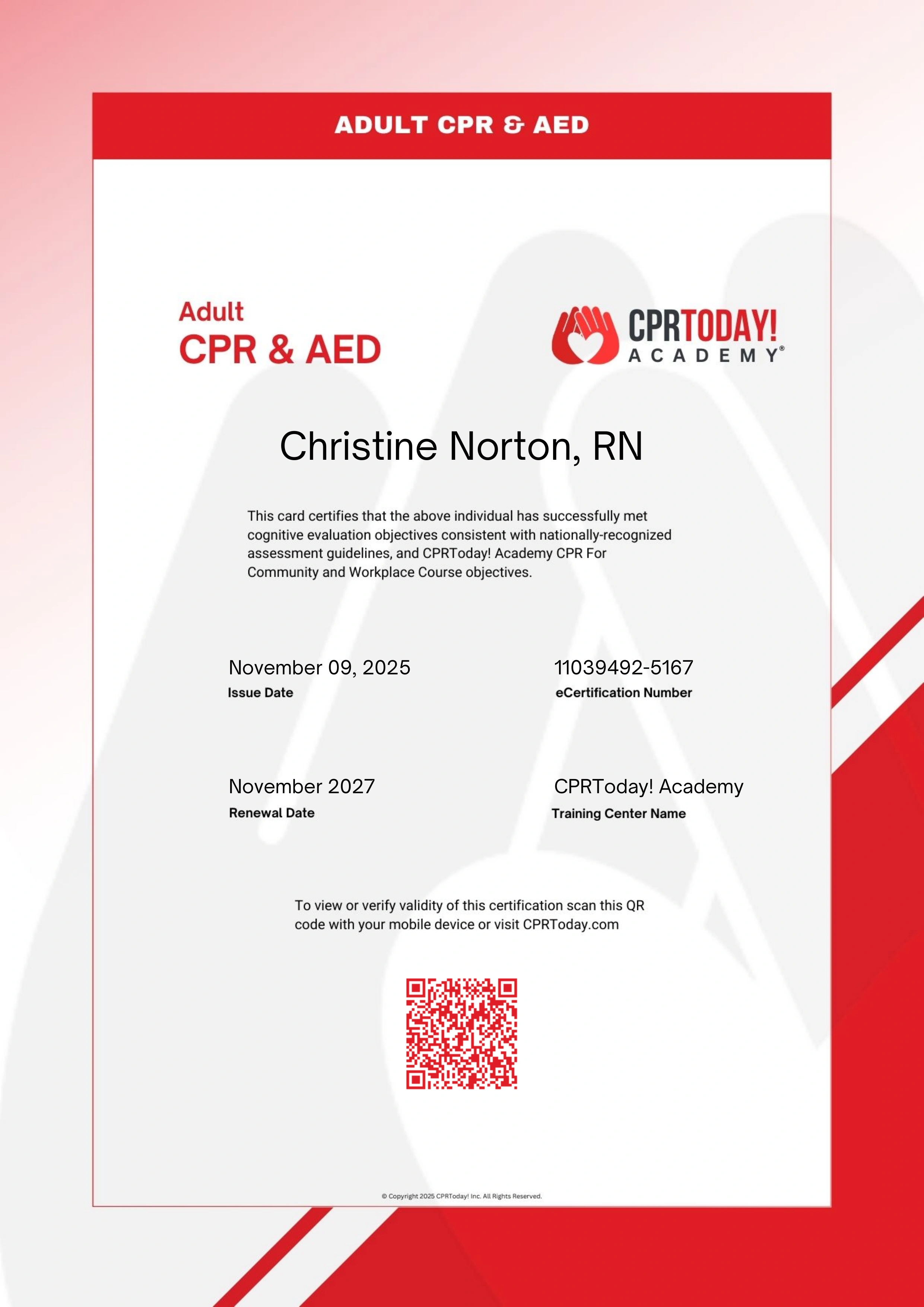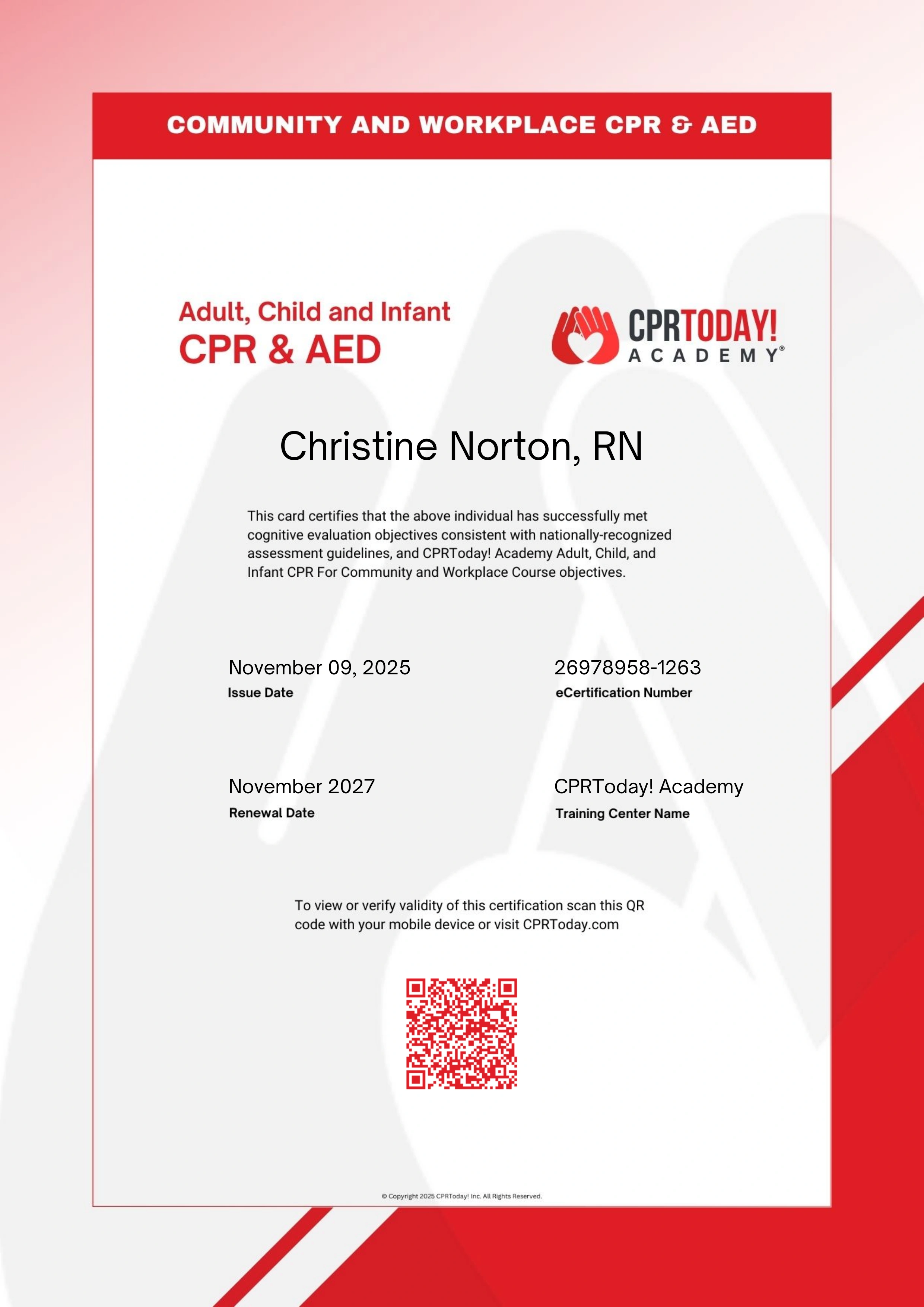 Full CPR coverage for infants, children & adults, with AED.